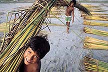 fish to the immense pre-Hispanic metropolis of Chan Chan. Another theory is that the name comes from the word Wachake, the name given to the coastal freshwater marshes where the totora reed grows, fed by underground springs. The marshes still exist today inside the Chan Chan citadel, giving life with their splash of bright green against the bleak, barren backdrop of the desert mudflats where the temples have survived for so long mainly because it never rains here. Ucañan's family, as the Humanchumo, Chinchihuaman, Chumbe or Inga, dates back to families who have not only preserved their peculiar last names, but also their age-old customs of fishing and building reed boats. The ritual that has not changed in centuries. The residents of Huanchaco learn from childhood that when the totora, or Scirpus reed, reaches its maximum height once a year, it is time to cut and lay the reeds out to dry on the sand until it attains its typically golden colour. The fishermen then skillfully tie the reeds together at the prow end until they succeed in forming an arc-shaped boat. This peculiar shape enables the rider to clear the breakers and guide the boat in a direction. The reed boats of Huanchaco are unique in that their prows end in a point and are tied slightly upwards, giving them the distinction of possibly being the world's first surfboard. And there is concrete proof that these boats were used thousands of years ago: the Viru culture's pottery, which dates back to 200 B.C., is decorated with drawings of the caballitos, or "tups" as the Mochica culture called them. The Spaniards changed the name to caballitos as the fishermen rode them rather like horses, a custom they continue until today in the fishing village of Huanchaco. At the end of the day's fishing, the boats are stuck upright in the sand in a line, waiting for the next day's catch. A Spanish priest long ago noted the fishermen "were many, and each seated on his balsa horse, cutting through the ocean waves in a rough sea, fishing for sharks and other fish." Each fisherman carries a red net called a "calcal" tipped with hooks of varying sizes, an implement still used in small scale fishing down the coastal villages of Peru. Historian Maria Rostworowski found in her research that the use of the reed craft was common during the sixteenth century down a wide swath of the coast from the northern reaches of Lambayeque down to the southern coast town of Pisco. As time wore on, the custom died out in many areas together with the marshes where the totora reed grew, leaving just the northern communities of Huanchaco, Pimentel and Santa Rosa. These are the only places that still use Guayaquil cane cut in half as an oar and a stone tied to a rope as an anchor. Norwegian explorer Thor Heyerdal has come across cases of this reed boat being used in Easter Island. Heyerdal has sailed the Pacific Ocean several times in totora reed boats to prove the Melenesians made contact with what is today the Peruvian coast thousands of years ago. The great seafarers of ancient times reputedly were the first to start using the reed, as well as being the first to figure out navigation aids such as the ocean currents and constellations. The ancient Peruvians were able to predict the fishing season just from the color of the sea, the shoals of fish or the relationship between the moon and the tides. It was these factors that usually determined whether it was worthwhile taking to waves. Inexorable extinction This age-old wisdom is now in an ever-increasing danger of totally disappearing, as less and less youngsters take an interest in keeping up this tradition. Only one of Ucañan's six children helps him with the fishing nowadays. "The others have emigrated to Lima, because life here is very tough," Ucañan said resignedly. The lack of enthusiasm has to do largely with the waning availability of fish, a scarcity the fishermen blame on modern trawlers. Another factor though, is the gradual disappearance of the totora reed marshes thanks to the endless new constructions in Huanchaco that have gradually reduced the underground water supply to alarming levels. Anthropologist Bernardo Alva claims that the same phenomenon is occurring now as it did in the 1940s in Chan Chan, where fishermen had to uproot the reed and plant it elsewhere, after local agriculture depleted the water table. At the citadel ruins, all that remains are a few scattered clumps of reed, the last remnants of the vast totora marshes that once flourished in the area. In Huanchaco, the fishermen have had to unite in order to preserve the last 40 totora reed marshes remaining, where they cultivate the reed from which they build their boats. The marshes are eco-systems and are home to various species of freshwater fish, insects as well as a peculiar bird that feeds on the reeds' parasites, helping them to grow. The marshes today are passed from generation to generation and are carefully tended to ensure their preservation, as these reeds are the very reason for the Huanchaco fishermen's existence. In the past three years, however, at least a dozen reed marshes have been burned and buried under piles of rubble, in aborted attempts to turn the area into a housing estate. If this building trend continues, in a few years, the only things that will remain of the Chimú culture, will be the mute portraits of birds and fish carved into the bas-relief friezes, found in the citadel of Chan Chan. Old families, such as the Ucañan, Huamanchumo, Chinchihuaman, Chumbe, which form part of the 160 native families in Huanchaco will have lost the battle to preserve their culture, while Peru itself will have lost a piece of living history. Saving the totora marshes On January 23, 1992, La Libertad Regional Assembly issued a Legislative Ruling which declared the 46 hectares of totora marshes located in Huanchaco are now a Protected Regional Area. The law states the marshes may only be used for the cultivation, harvesting and dr