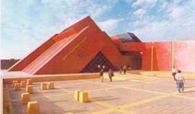 Pyramid and a areas where artisans will show how to work their ancient