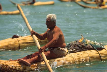 An old sea salt with his fishing tackle searches for the best spot to cast his nets.